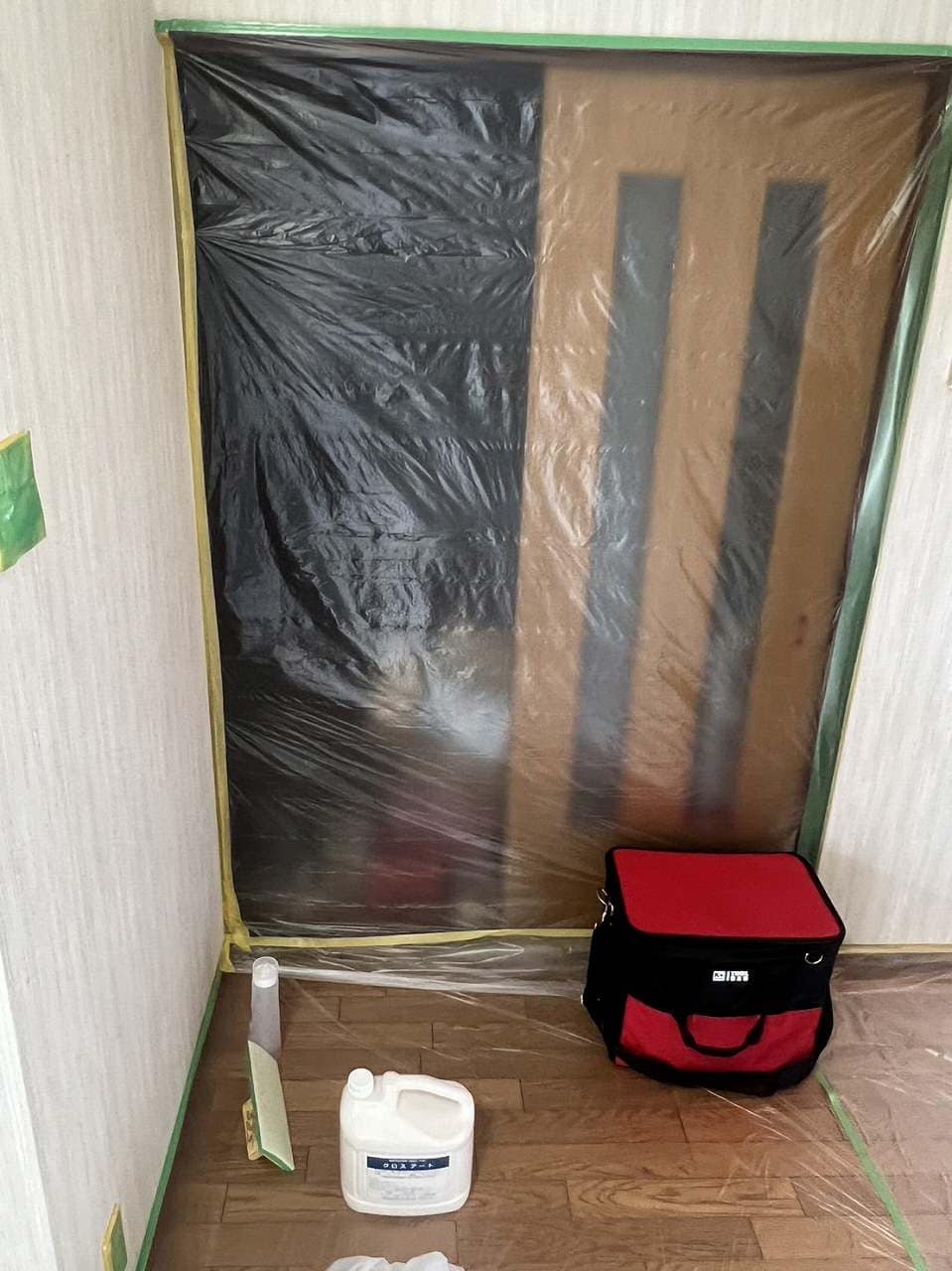 1日目は養生と1回目の染色