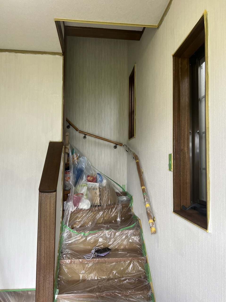 丁寧に養生して、染色作業がスムーズに進む事と